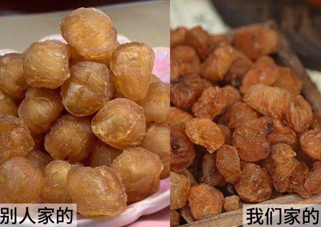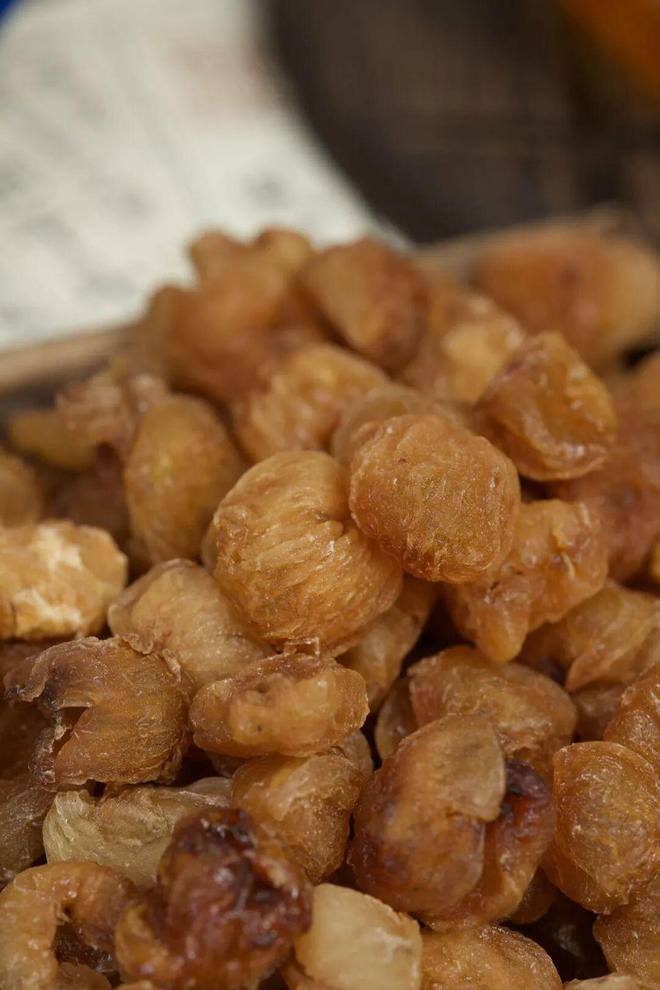 1、桂圆肉紧实圆润,拿在手中有明显分量感,不像劣质果那般干瘪轻飘,颜色多为琥珀色,不暗沉、不泛白