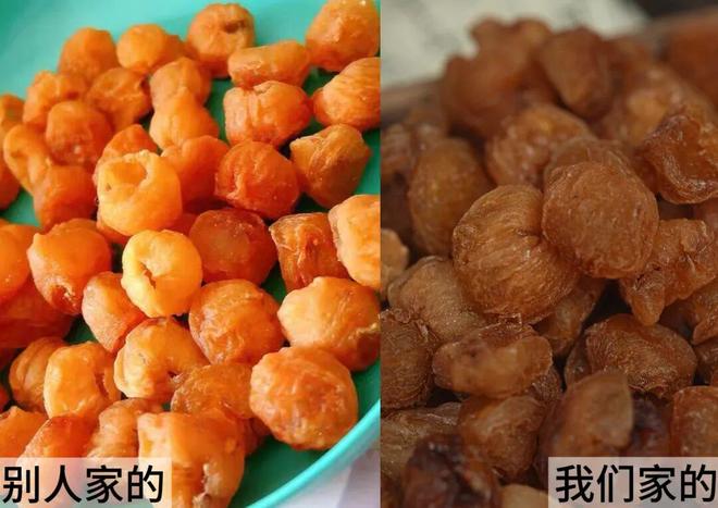 可别被市面上那些 “靓货” 骗了!他们都是先带核加糖烘,定型了再去核,烘到六七成干就出货 —— 表面看着剔透饱满?那是调了水头 + 中间空心透光的假象!咬一口就露馅:湿湿软软的,嚼着发 “抛”,还带着股齁甜的糖味,其实全是水分和额外加糖在撑场面,看着大颗实则压秤得很